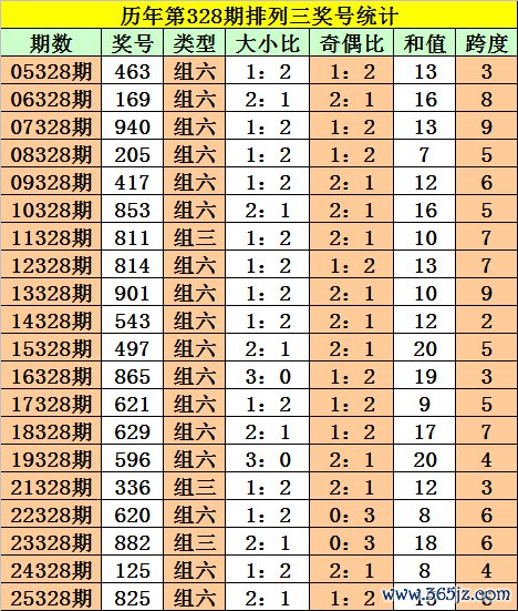 成列三第2025328期奖号:825,和值15,跨度6,大小比2:1,奇偶比1:2。