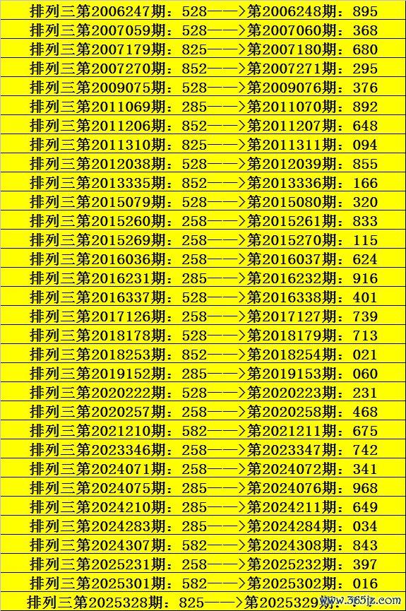 第2025328期枚举三奖号为825,亚洲免费爱爱视频历史上该号码直选出现3次,下期奖号分辨为:680、094。
